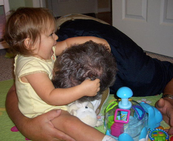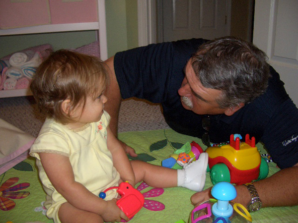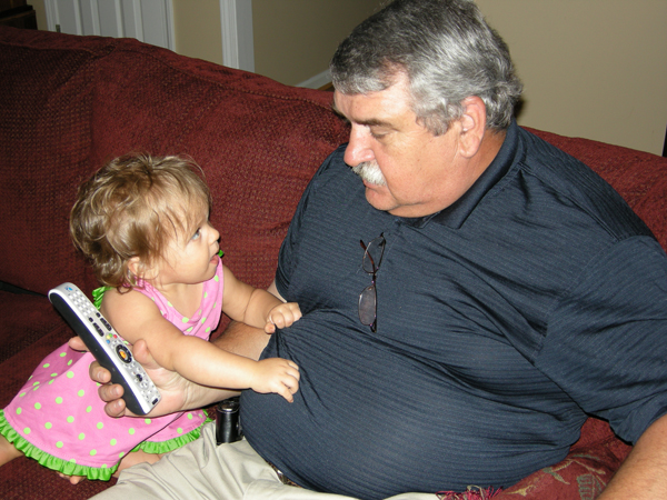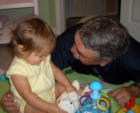 I’m not sure if it was timing for Brittain, or what, but just this past week things suddenly turned around. On Wednesday afternoon after I had gotten home from work, Duke called me to ask if he could come by and pay Brittain a visit. When he came in, the scenario started out just as in the past. Brittain took one look at him and then began to cling to me. We headed to her nursery where Duke and I got in the floor with her to play. It was at that moment that Brittain decided she was going to love Duke. It was as if they had never missed a beat with each other. They were making their twin expressions to each other and laughing and playing like you’ve never seen. I LOVED it! It made me appreciate my dad all over again – the wonderful father he has been to me and the wonderful, fun grandfather he is to Brittain. What a great and refreshing day that was.