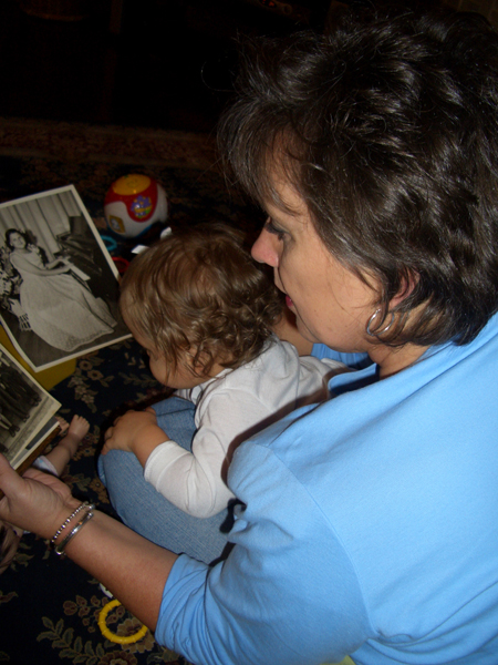 I had such an interesting night tonight. We visited my Aunt Janice and Uncle Terry (“Great” and “Unc” as they will be to Brittain). Although they live right here in Griffin, unfortunately life keeps us busy enough to the point that we’re not able to visit as much as we should, or would like to. Although it was sort of last minute plans, we had a wonderful visit and spent some quality time with family who all are a part of who Brittain is. We also had the pleasure of looking at some old photos of Brittain’s Great Aunt Janice and Duke as young children, as well as pictures of Grandmama and Pops who have gone on before us. (As a side note, “Grandmama” was alive to meet Brittain while she was still in my tummy, but didn’t make it to see her after she was born. It sometimes makes me sad to think about that, but it also makes me smile knowing how much she’s enjoying watching her from above.)