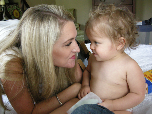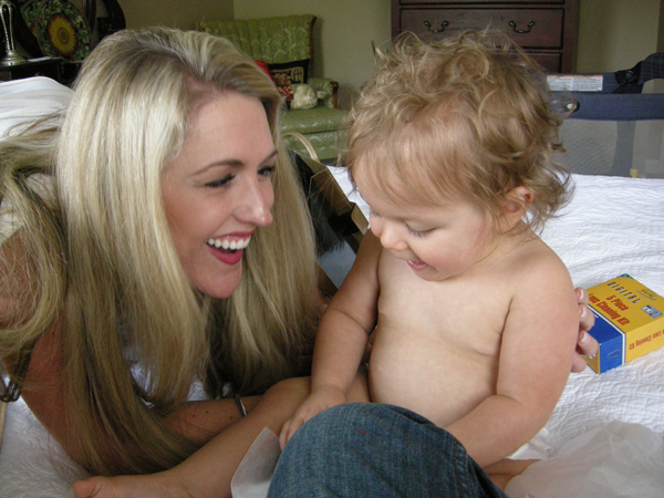 Here is Duke giving Brittain his famous “tummy kick”…that is a tummy kiss in layman’s terms. She loved it so much that she kept pulling his head back to her tummy for more!: