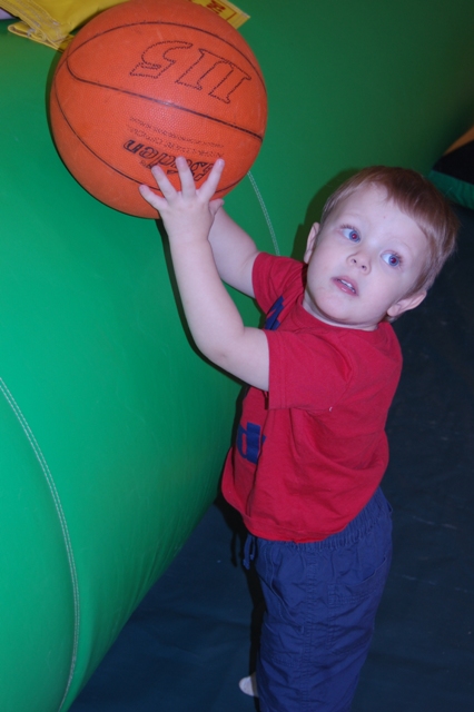 Robert, however, LOVED the Moonwalk. He got smart and decided to combine the fun of the Moonwalk and the balls by putting a ball IN the Moonwalk. Smart kid!: