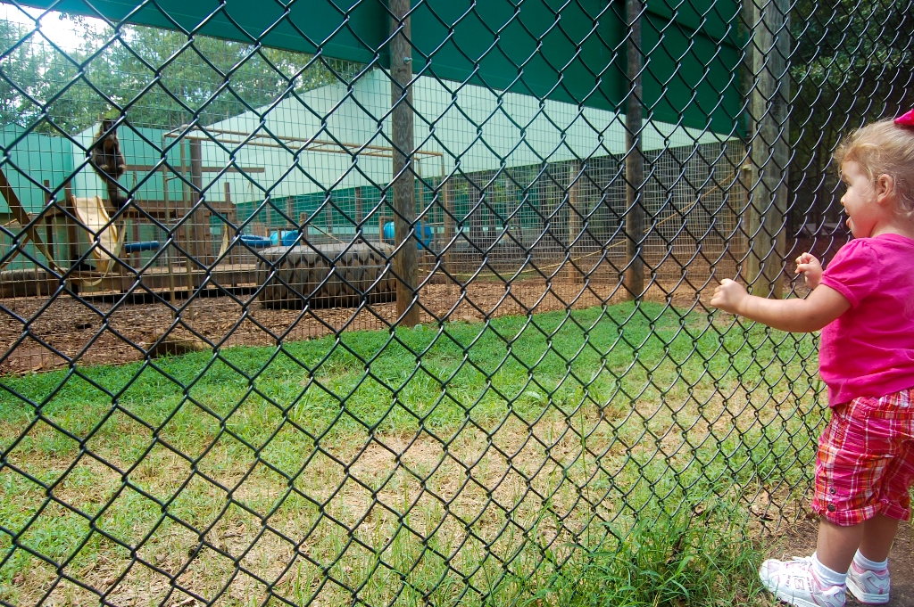 A few weeks ago on a Saturday, Brittain and I woke up extremely bored. Dan was at work and as we sat in the kitchen and ate breakfast, I could feel both of us looking around thinking, “this is going to be a boring day.” My friend Amanda recently came up and took her daughter, Kyla Rose to Noah’s Ark in Locust Grove. If you’re not familiar with this place, it’s a non-profit rehabilitation center for animals, and also a group home for children from birth to 18 years. Since we haven’t taken Brittain to the zoo yet, I felt like this was a great opportunity to get her feet wet. I called Mimi and Aunt Su Su to come along, so when they arrived we spent an hour and a half loading up the car and then headed over to Locust Grove.