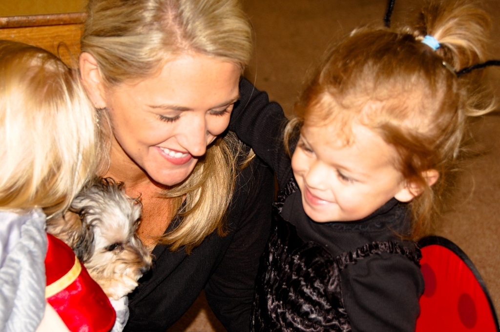 I will first introduce to you Brittain’s cousin, Sophie. Sophie, Cecilia and Matt’s new puppy, joined the family just a few weeks ago. We had been very IMpatiently waiting to meet Sophie. Aunt CC and Sophie finally came to see us the week of Halloween. Aunt CC and I had a girls night out alone at the NKOTB concert and then the rest of their visit we spent as much time together as possible. We danced, we laughed, we sang, we kissed, we hugged, and we stayed up WAAAAAY past our bedtimes. But paleeeeeeease, would we really do it any other way?