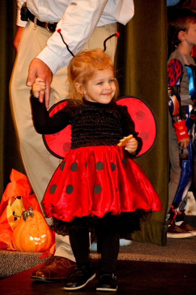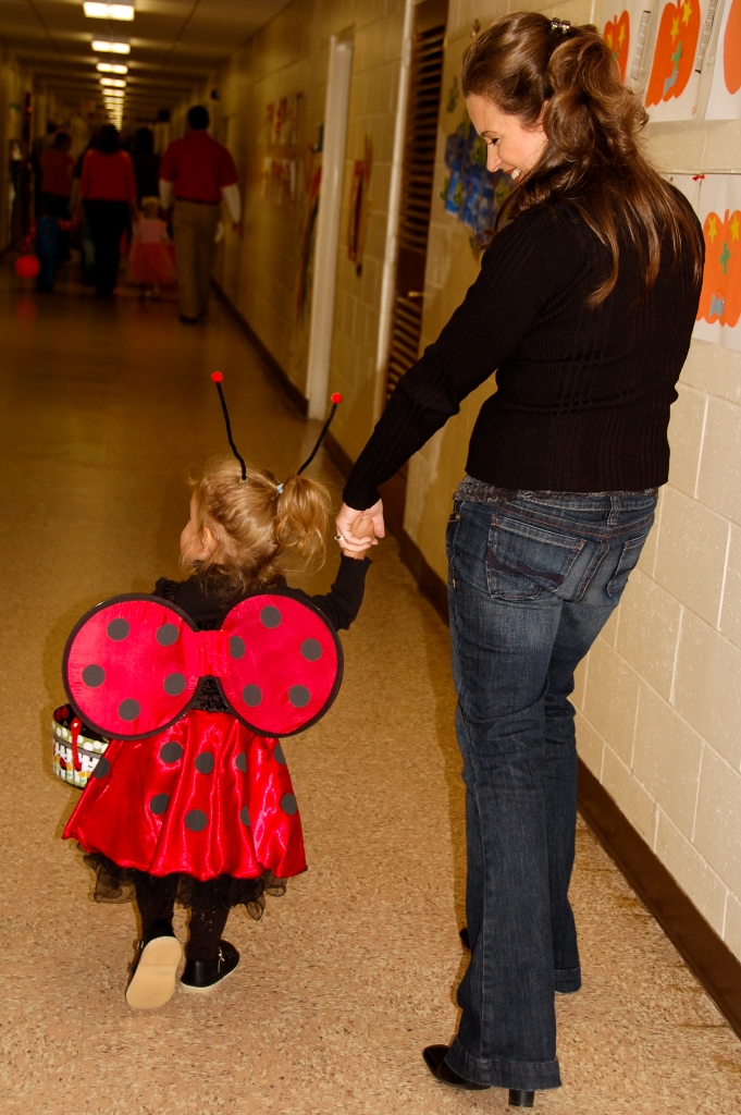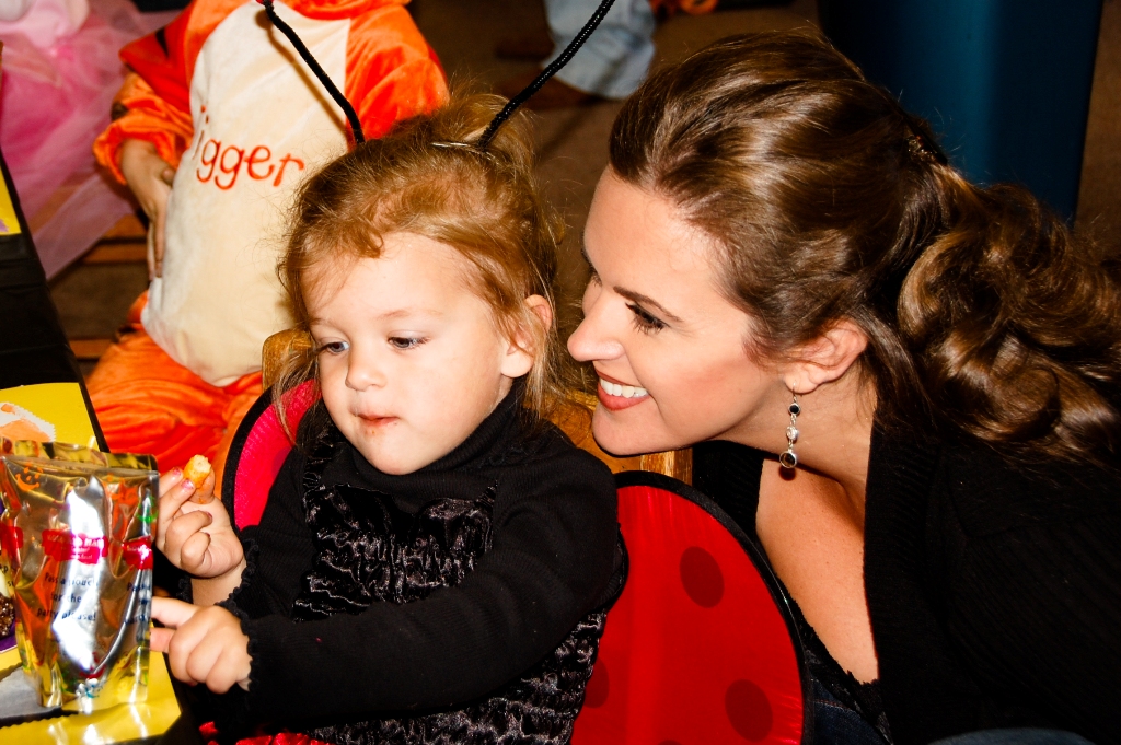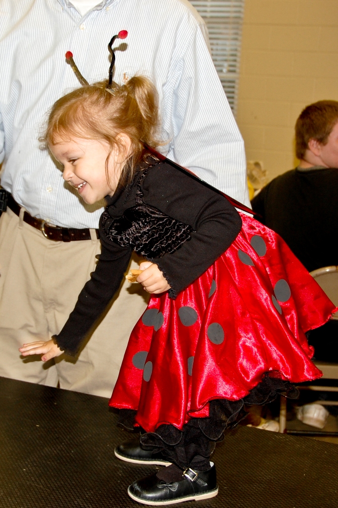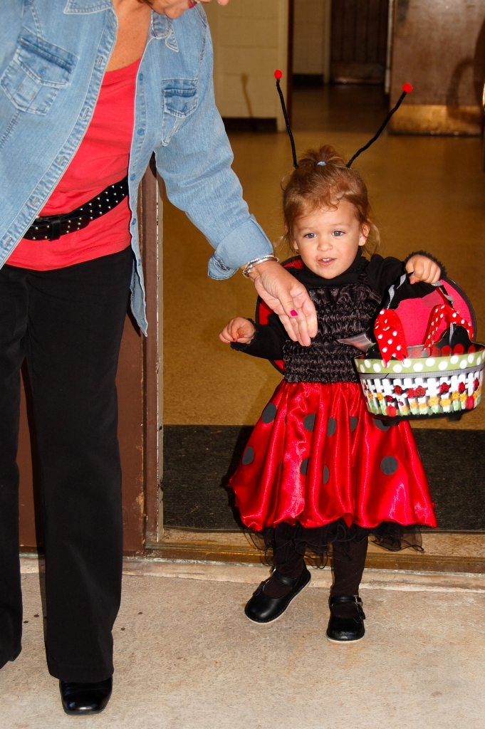 Aunt CC surprised all of us by buying a matching ladybug costume for Sophie. So, Halloween day began with matching outfits at preschool. It was WAY too much fun. Perhaps the most humorous part was that Brittain cared the least about having Sophie there. The other kids? They loved it! In fact, they loved it so much that Cecilia got extremely tickled by the outpouring of love these kids had for Sophie. She could barely keep her balance as the kids surrounded her.