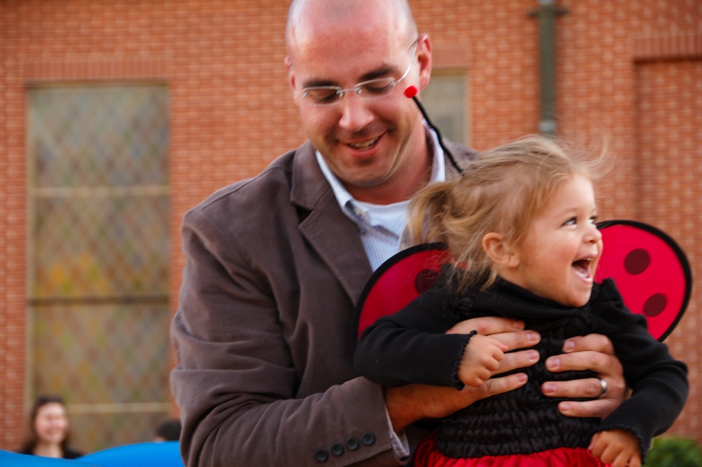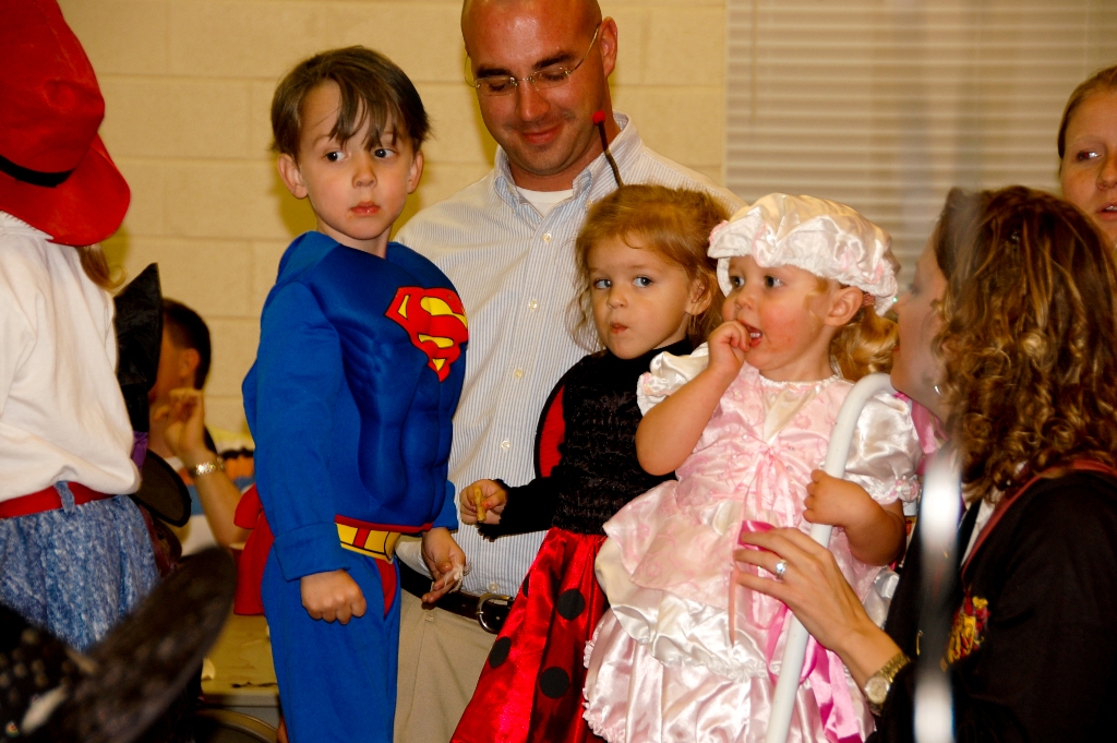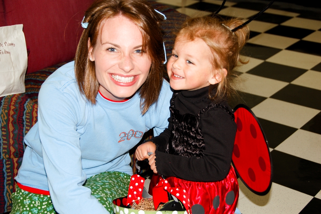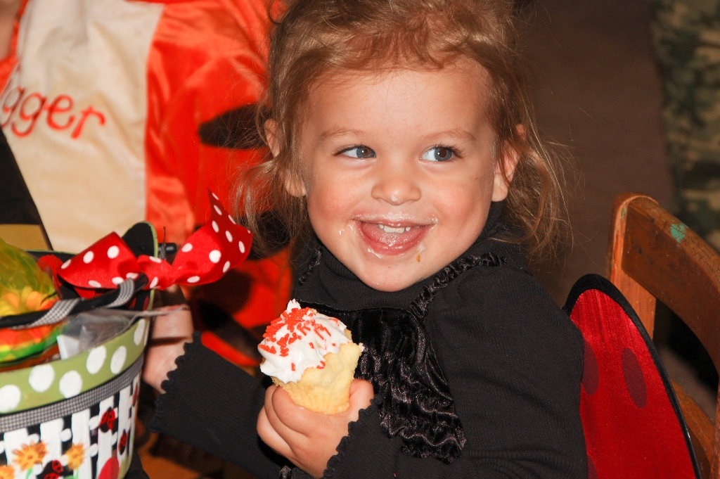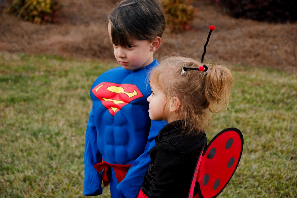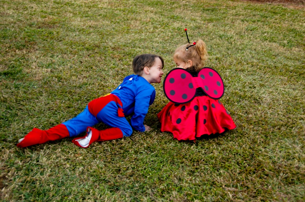 Aunt CC surprised all of us by buying a matching ladybug costume for Sophie. So, Halloween day began with matching outfits at preschool. It was WAY too much fun. Perhaps the most humorous part was that Brittain cared the least about having Sophie there. The other kids? They loved it! In fact, they loved it so much that Cecilia got extremely tickled by the outpouring of love these kids had for Sophie. She could barely keep her balance as the kids surrounded her.