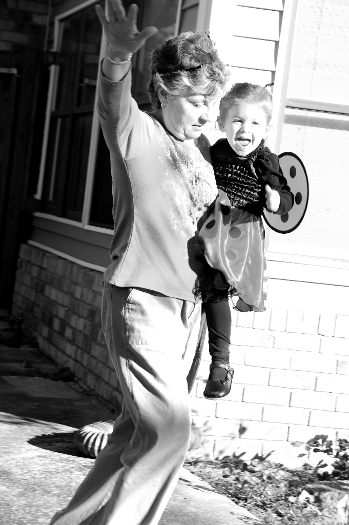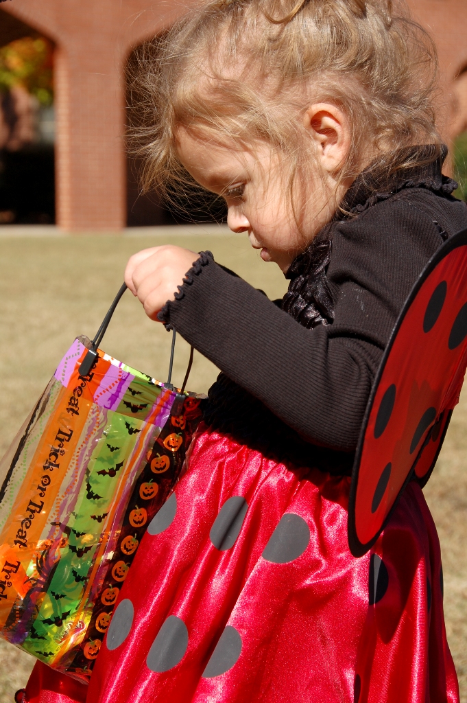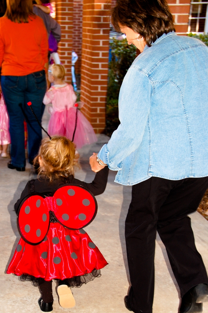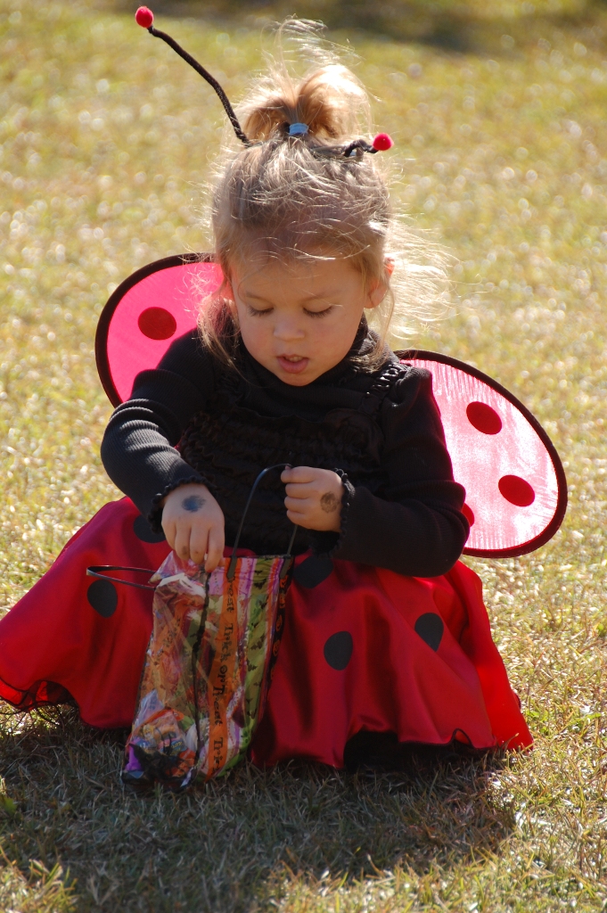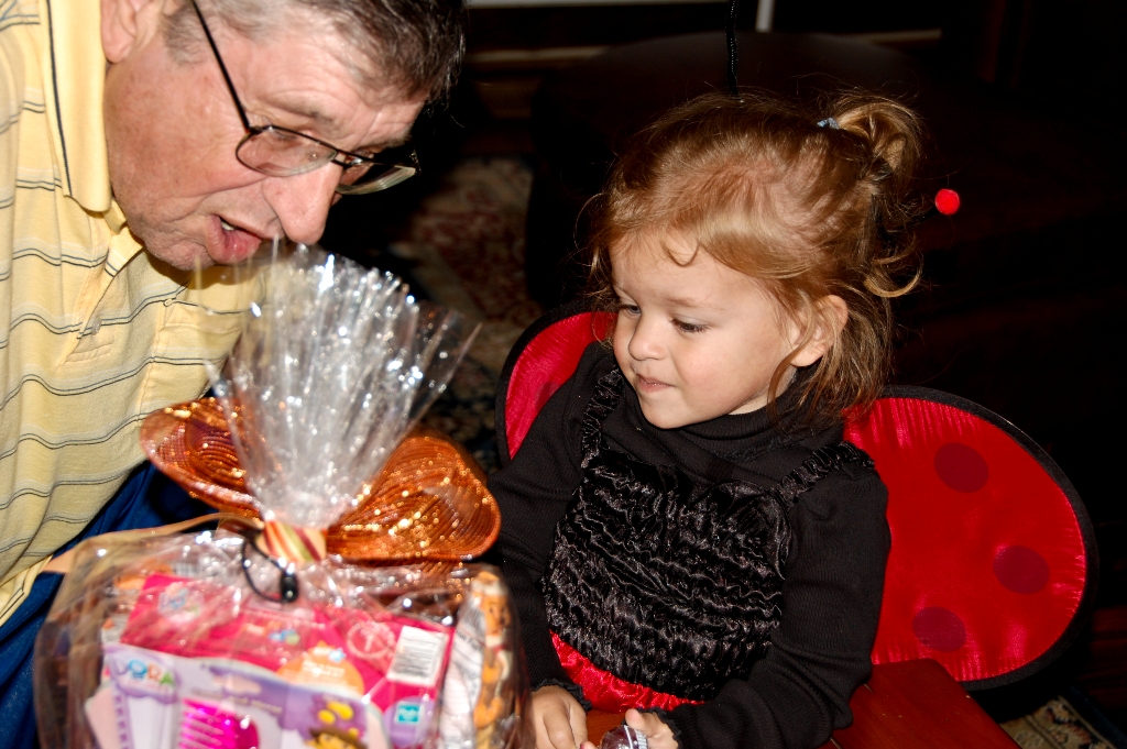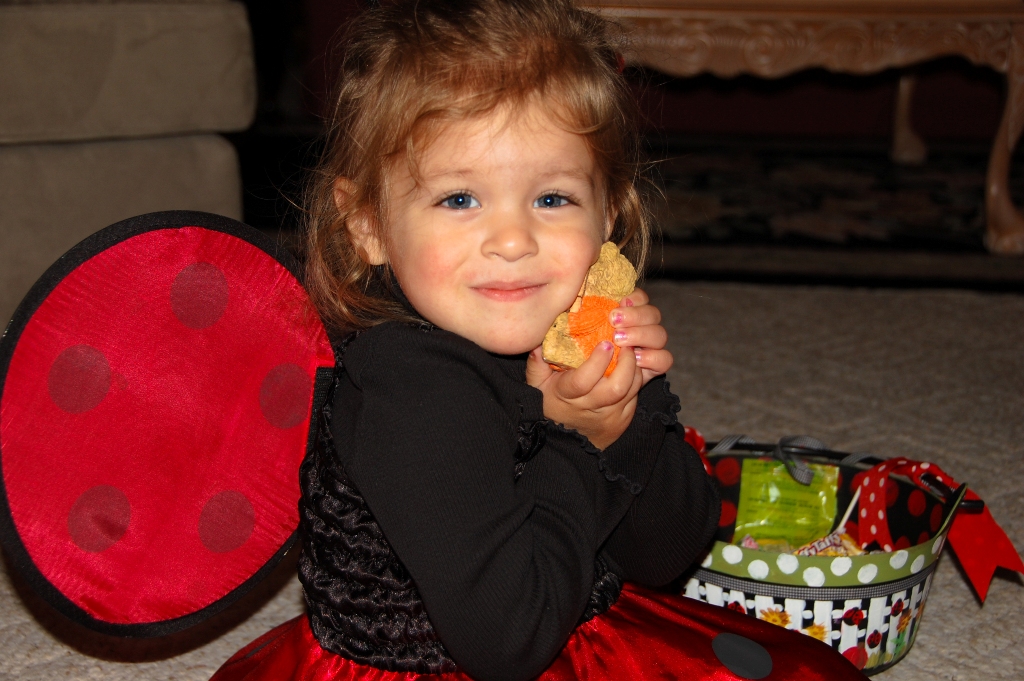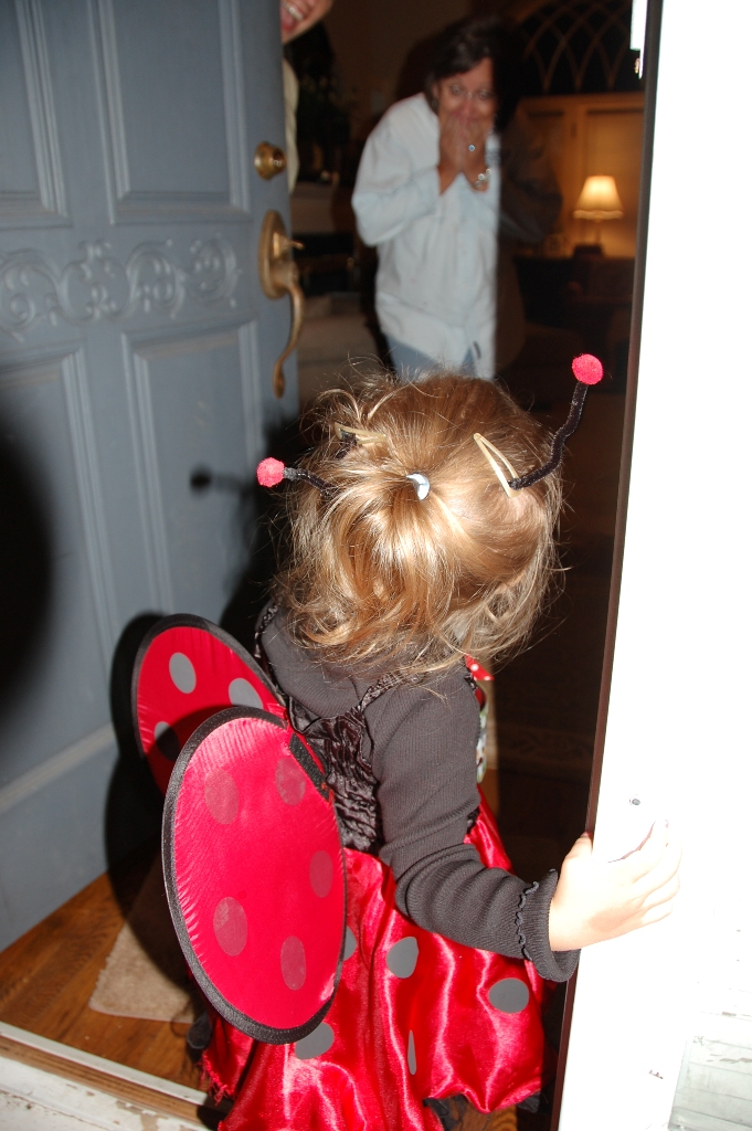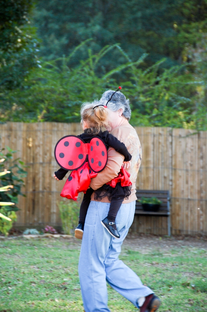 Our last stop was to Aunt Janice and Uncle Terry’s. The tenticles were crooked and the ladybug skirt had taken it’s toll, but Brittain hung in there a little while longer so that she could receive the last bit of candy from the day.