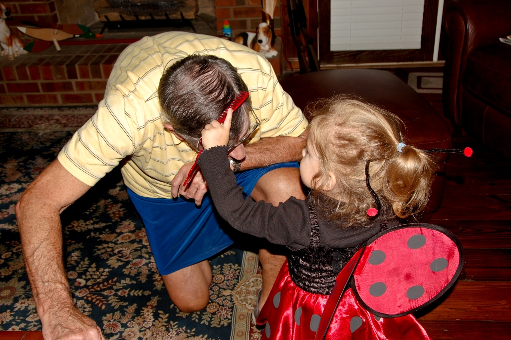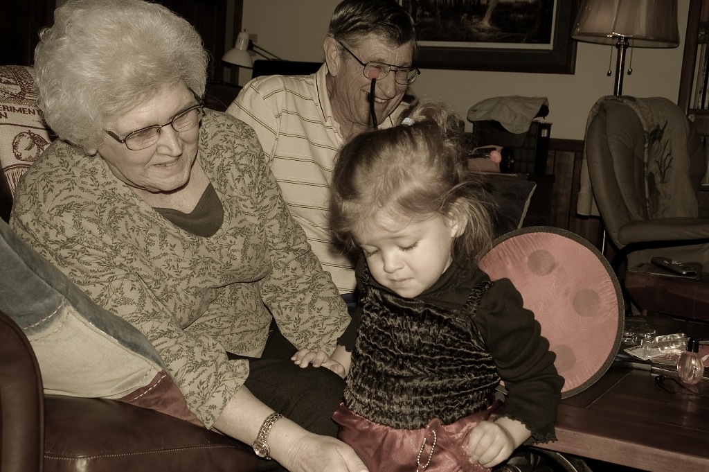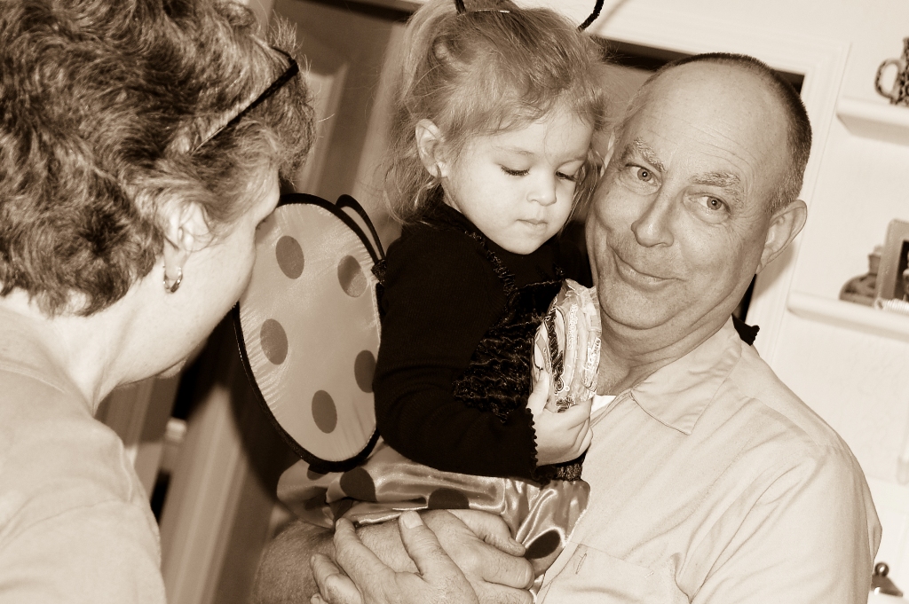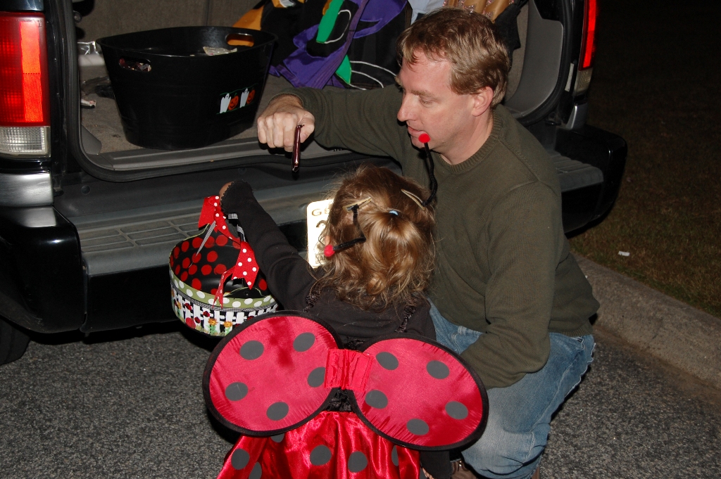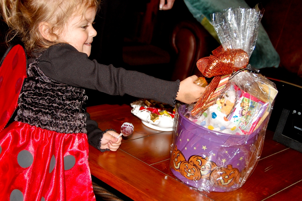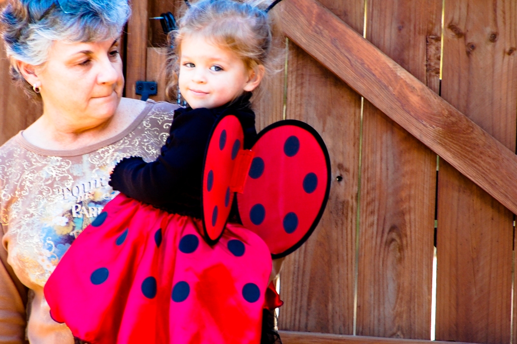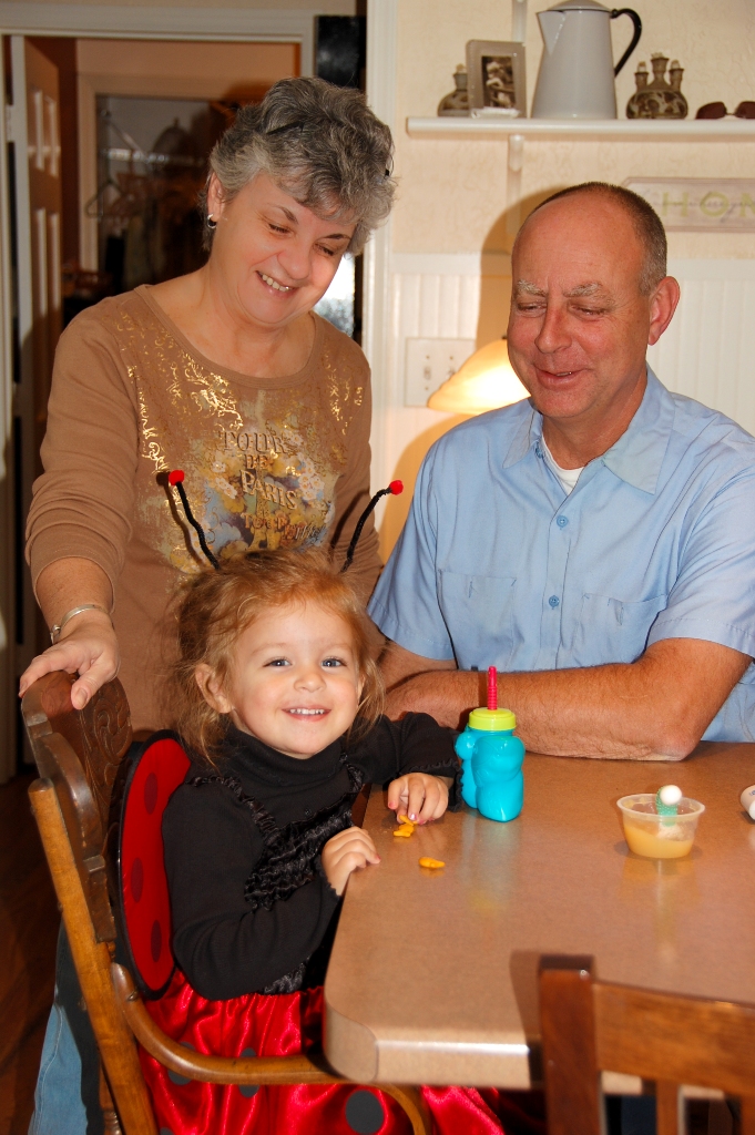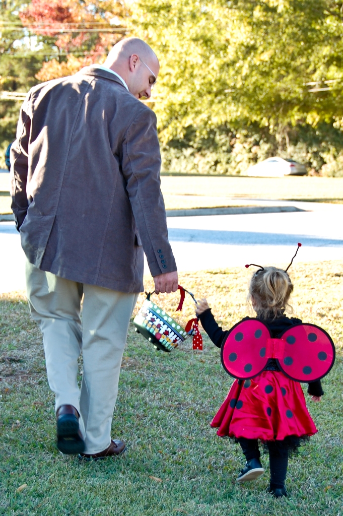 Our last stop was to Aunt Janice and Uncle Terry’s. The tenticles were crooked and the ladybug skirt had taken it’s toll, but Brittain hung in there a little while longer so that she could receive the last bit of candy from the day.