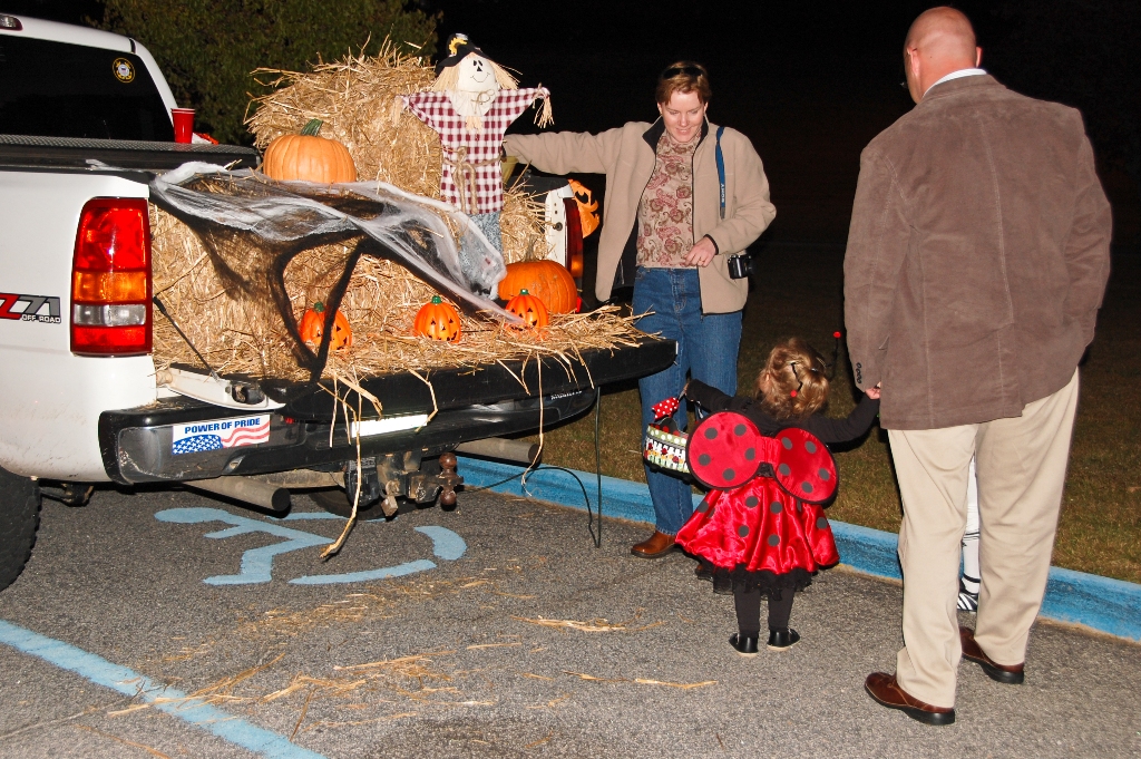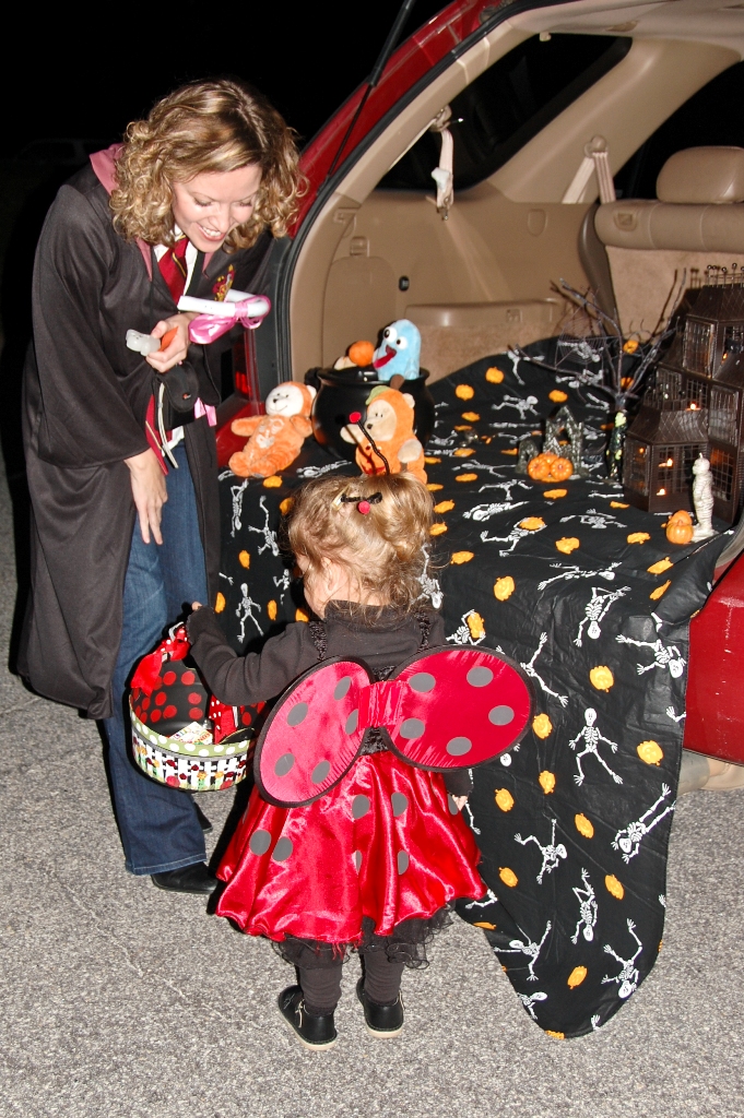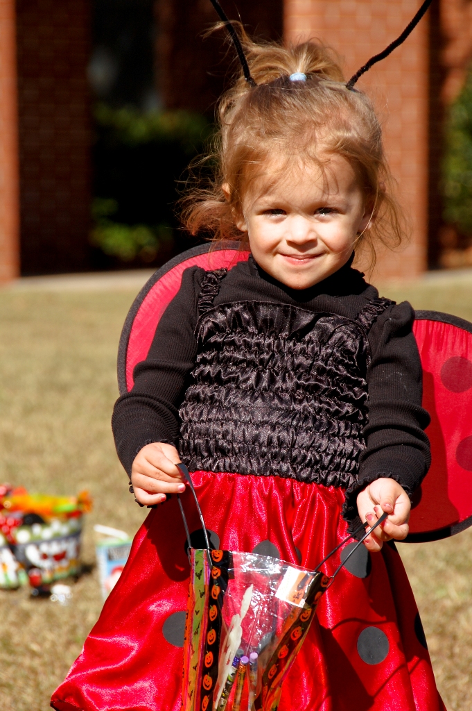 Much to my disbelief, Brittain DID take a nap that afternoon. As soon as she woke up we suited up again for the rest of our Halloween day. As if the day hadn’t already been fun enough, it only seemed to get better. Before we headed to the church for Trunk or Treat, we stopped by Gramy and Papa’s to test out our “knock knock…Trick or Treat!!!”