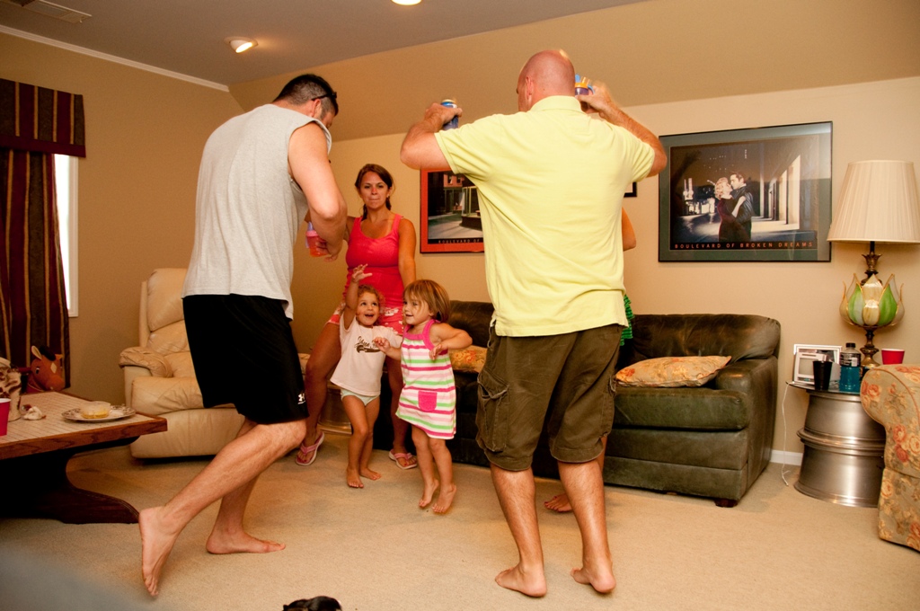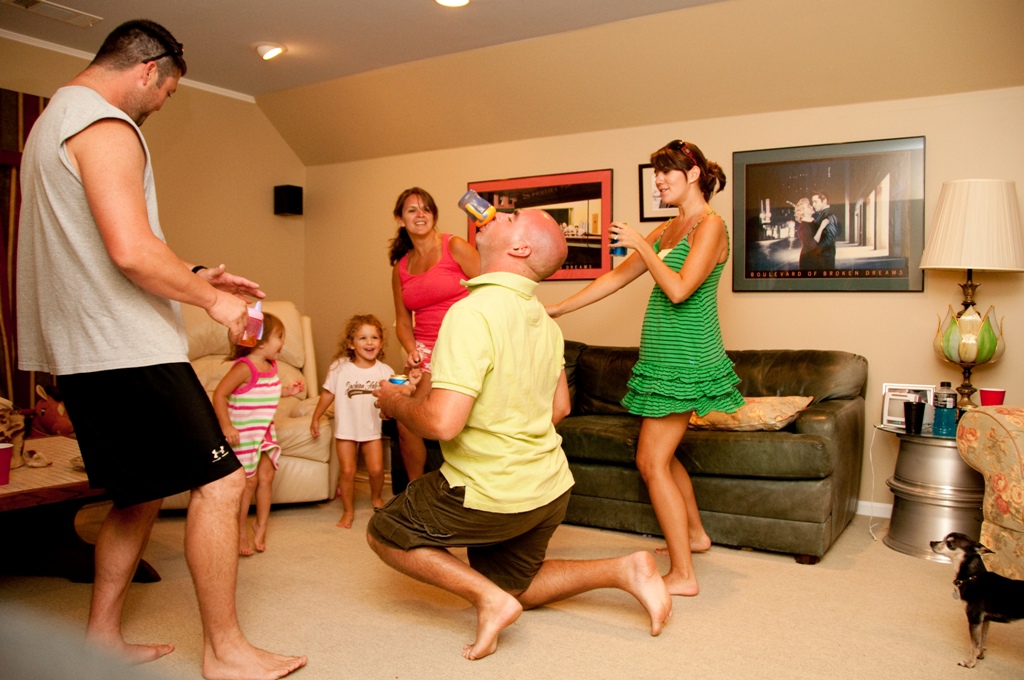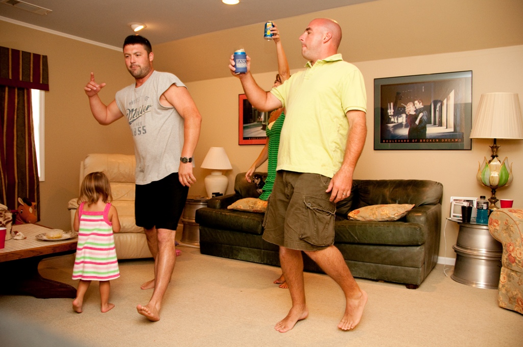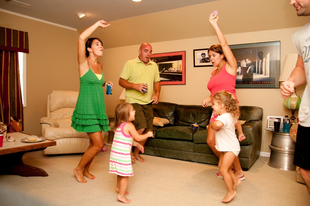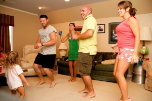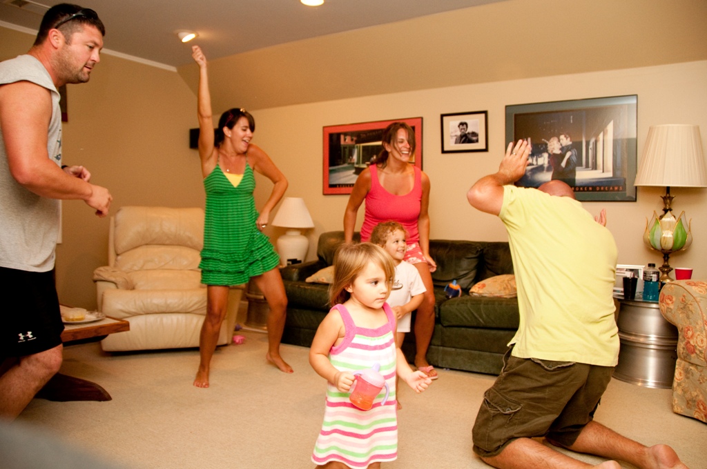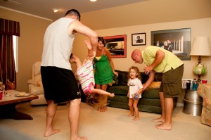 We experienced another night like this not too long ago with our friends, Jenny, Matt and Ava. After spending the day at Jenny’s dad’s pool with them, we decided to continue the party at our house. Shortly after we got there I decided it would be a great idea to have a “dance party.” I knew the girls would love it. I wasn’t sure if I was going to be able to talk the guys into it. After already having had a discussion that we all secretly liked the Miley Cyrus song, “Party in the USA,” I asked Dan to do a download it for us. He ended up downloading 6 different songs, and those 6 songs became the official “dance party” CD. After repeating the CD about 150 times, dancing and laughing harder than I knew possible, and watching Brittain and Ava giggle from the fun and watching their parents act like fools, we finally (and somewhat unwillingly) called it a night at 12:30 a.m.